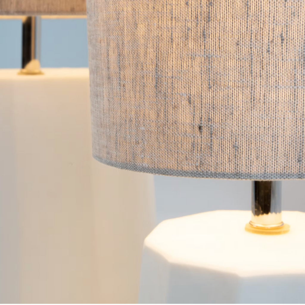 De Okka tafellamp van Guaxs combineert een mondgeblazen glazen voet met een elegante lampenkap. Het contrast tussen het organische glas en de zachte kap maakt de lamp tot een stijlvol statementstuk, perfect als sfeermaker op een side-table, dressoir of in de slaapkamer.
