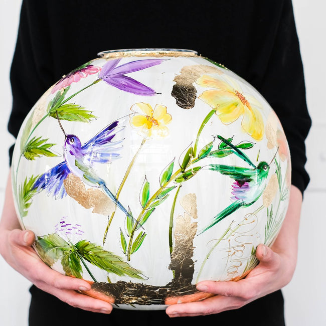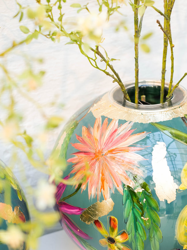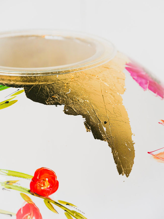 "Doortje is vanaf haar jeugd al gefascineerd door de natuur en de mens. Dit inspireert haar en beïnvloedt haar gedrevenheid om dit in heldere krachtige kleuren en in dikke lagen op het doek te zetten. Werkend vanuit haar gevoel heb ik ontdekt om op dezelfde manier glazen objecten te beschilderen. Alledaagse elementen worden soms uitbundig en dan weer ingetogen vertaald en stralen ineens iets moois uit." De vazen van Doortje Ijpelaar worden in beperkte oplage met de hand beschilderd, en zijn een absolute eye-catcher in het interieur.