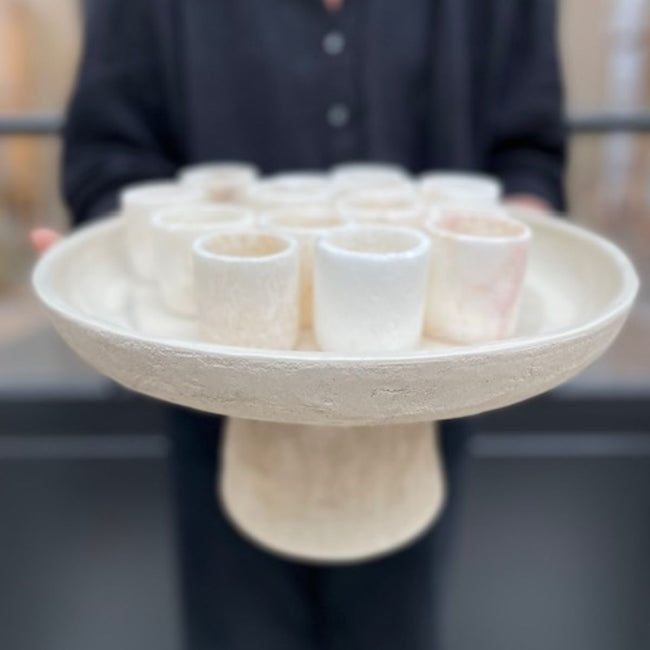 De vaas ‘Bonheur’ brengt letterlijk en figuurlijk een stukje geluk in huis. ‘Bonheur’ ligt dankzij z’n elgante en vrouwelijke vorm duidelijk in dezelfde lijn als de lamp ‘Bonjour’. Zijn structuur en warm kleurenpalet maakt hem het ideale decoratiestuk voor een dromerig boeket.