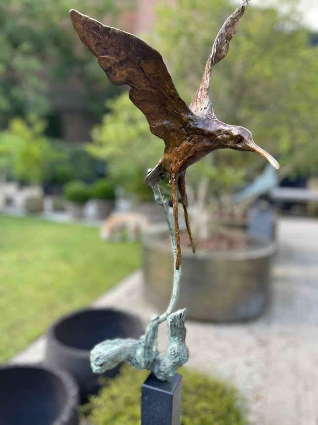 Jonneke Kodde is bekend van haar ranke dynamische vogelsculpturen, maar ook in haar andere beelden is de dynamiek en abstractie karakteristiek weergegeven.
