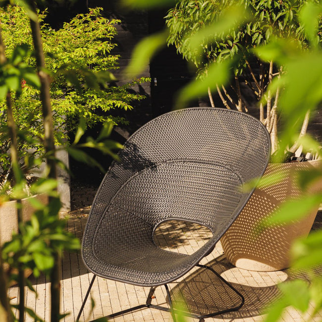 De keuze voor Rotan: Ideaal voor gebruik in meubels, rotan belichaamt van nature veel van de eigenschappen die hightech materialen proberen na te bootsen. De hoge sterkte en flexibiliteit maakt de vorming van organische vormen mogelijk die zich vormen naar het lichaam van de gebruiker. Het uitstekende ademend vermogen en de lage thermische geleidbaarheid van rotan verbeteren het gebruikerscomfort en helpen het lichaam om een constante temperatuur te behouden.