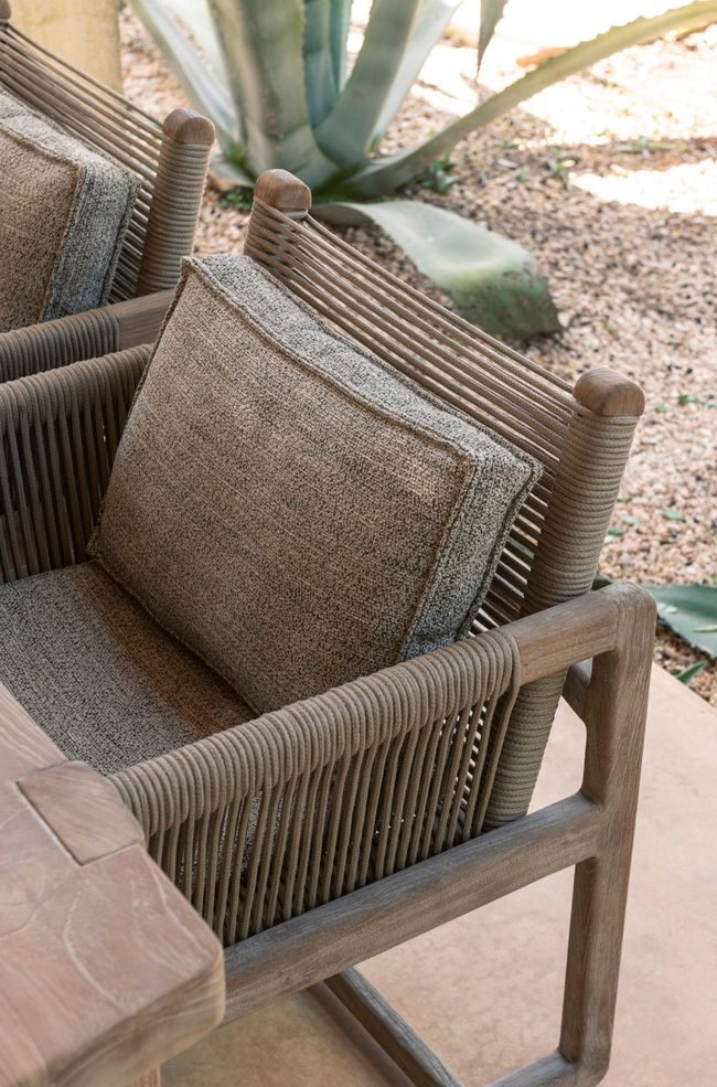 Of u nu kiest voor een royale eettafel, comfortabele loungestoelen, een modulaire loungeset, een ligbed of een stijlvolle salontafel – elk stuk is ontworpen om perfect te integreren in tuinen, terrassen en poolhouses. Zitcomfort staat centraal. Daarom werkt GOMMAIRE uitsluitend met hoogwaardige buitenkussens, afgewerkt met Italiaanse outdoorstoffen die niet alleen duurzaam, maar ook luxueus en aangenaam aanvoelen. Alle kussens worden op maat en op aanvraag geproduceerd en zijn verkrijgbaar in diverse kleuren en stoffen, zodat u een persoonlijke touch kunt geven aan uw outdoor interieur.