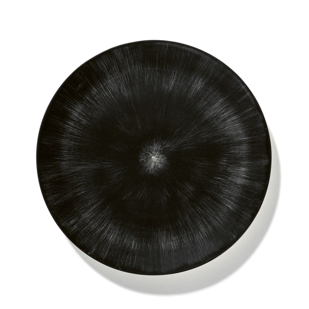 In Dé wordt het spel van clair -obscur, licht en schaduw dat zo eigen is aan de stijl van Ann Demeulemeester vertaald naar een servies. De 'dégradé' wordt handmatig op de randen van de fijne borden geschilderd, in verschillende lagen zodat een minutieus lijnenspel ontstaat. Hierdoor is elk bord uniek en zijn verschillende combinaties mogelijk.