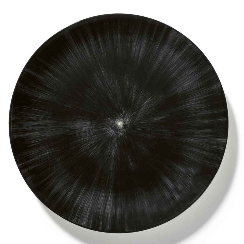 In Dé wordt het spel van clair -obscur, licht en schaduw dat zo eigen is aan de stijl van Ann Demeulemeester vertaald naar een servies. De 'dégradé' wordt handmatig op de randen van de fijne borden geschilderd, in verschillende lagen zodat een minutieus lijnenspel ontstaat. Hierdoor is elk bord uniek en zijn verschillende combinaties mogelijk.