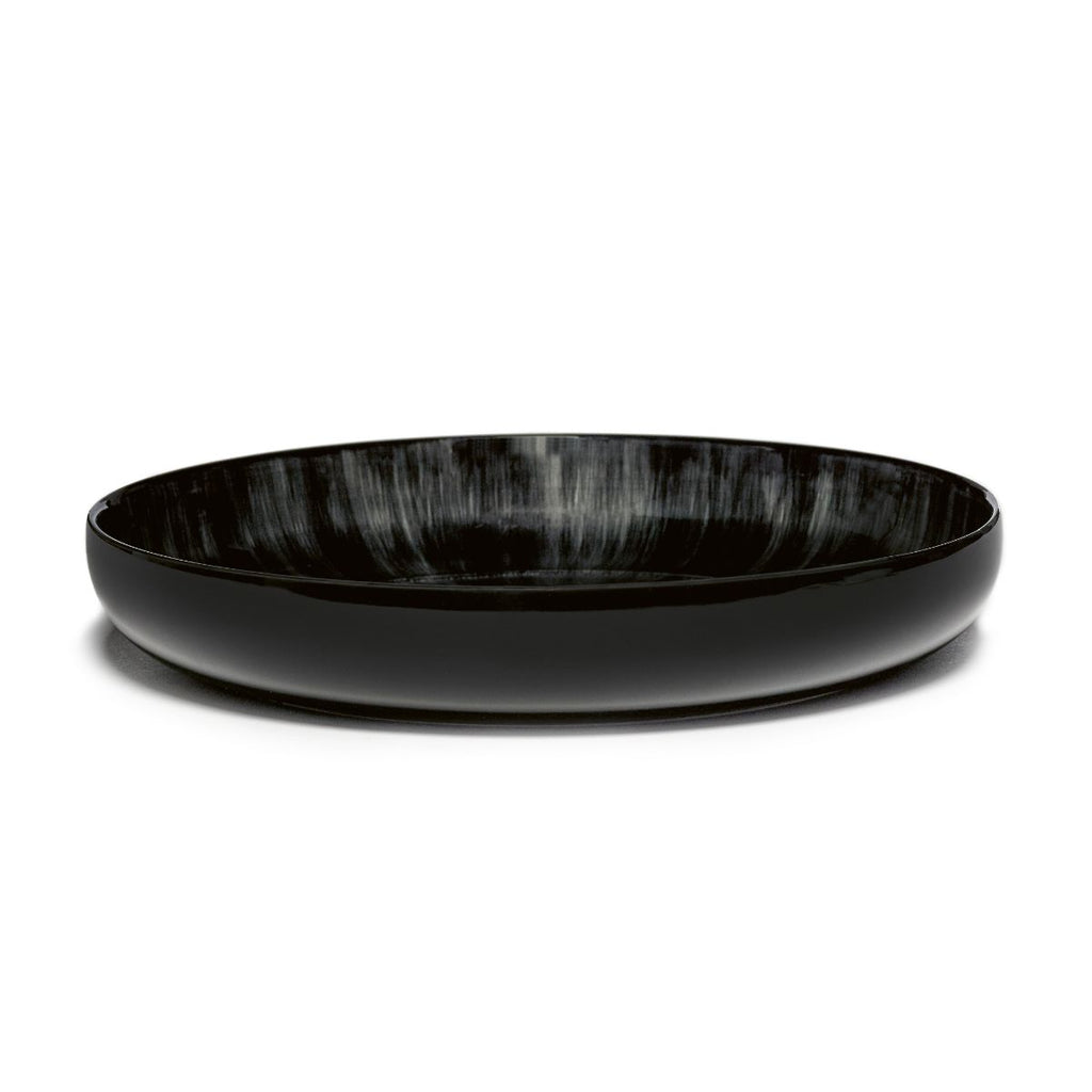 In Dé wordt het spel van clair -obscur, licht en schaduw dat zo eigen is aan de stijl van Ann Demeulemeester vertaald naar een servies. De 'dégradé' wordt handmatig op de randen van de fijne borden geschilderd, in verschillende lagen zodat een minutieus lijnenspel ontstaat. Hierdoor is elk bord uniek en zijn verschillende combinaties mogelijk.