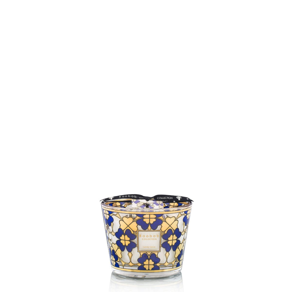 Geïnspireerd op een vintage juweel van de jaren 60 straalt de Lucky Love-kaars met een kostbare zeefdruk in 24-karaat goud en nachtblauw. Kleine hartjes komen samen om een klavertje vier te vormen. Deze kaars is zowel een geluksbrenger als een decoratieve blikvanger.