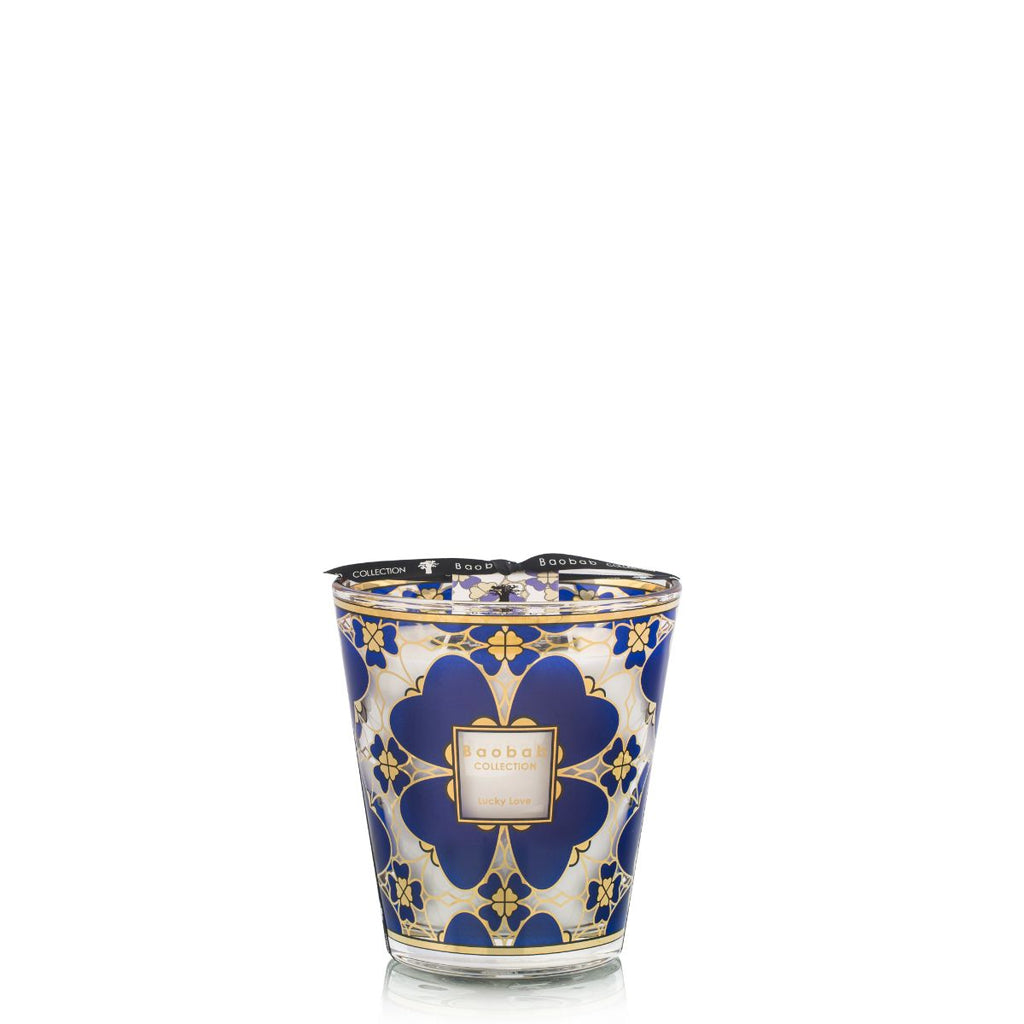 Geïnspireerd op een vintage juweel van de jaren 60 straalt de Lucky Love-kaars met een kostbare zeefdruk in 24-karaat goud en nachtblauw. Kleine hartjes komen samen om een klavertje vier te vormen. Deze kaars is zowel een geluksbrenger als een decoratieve blikvanger.