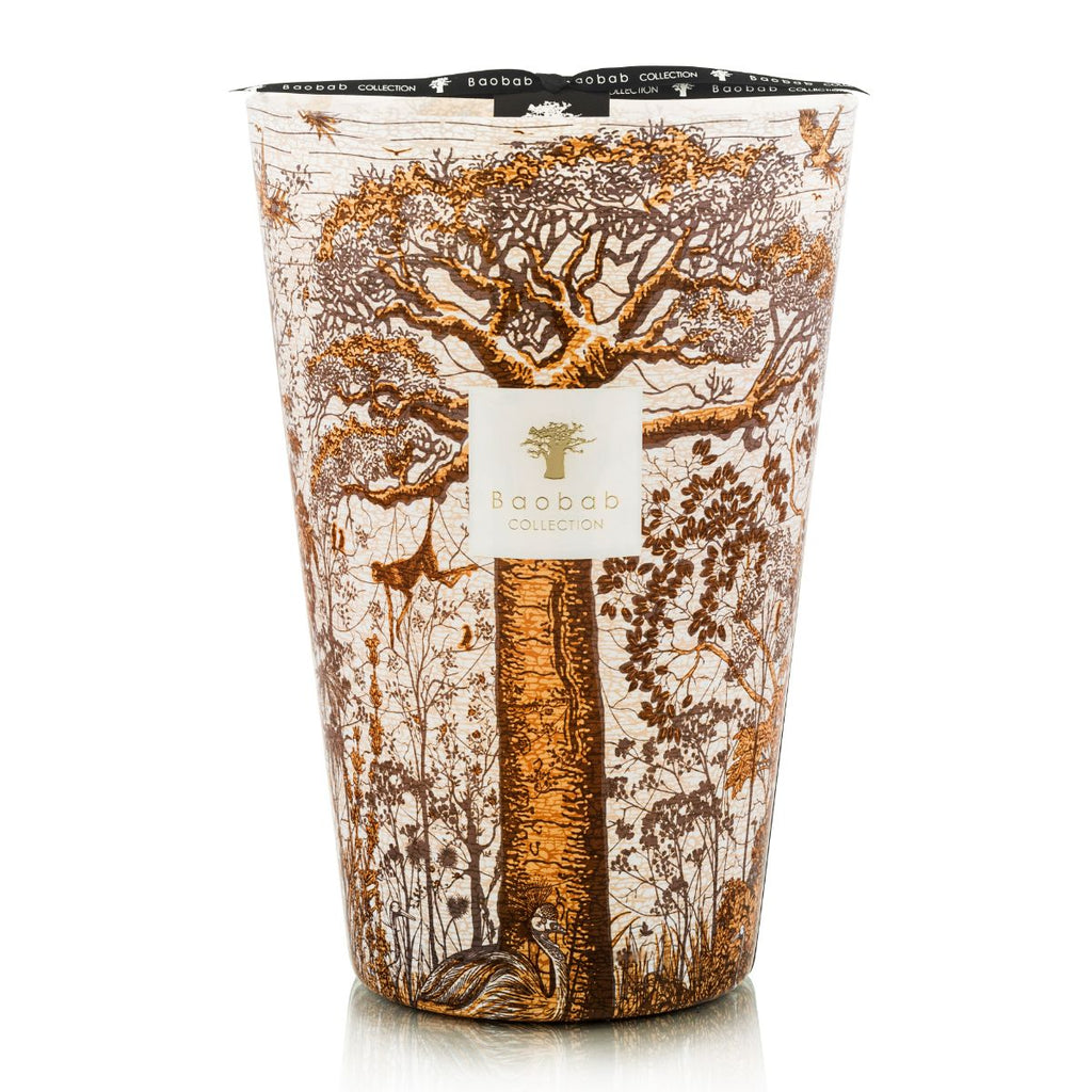 Het decor van de Dualla-geurkaars heeft waarschijnlijk de meest Afrikaanse tinten van de hele Sacred Trees Summer-collectie. Een baobab, zo oranje als de zon, staat getekend op een grijze achtergrond als een denkbeeldige wachter met uitzicht op de savanne. Een weelderig landschap waar de bomen bloeien en de fauna in beroering is. Dit decor is gemaakt met een sublimatietechniek door Italiaanse ambachtslui. De Dualla-geurkaars heeft een aromatisch parfum