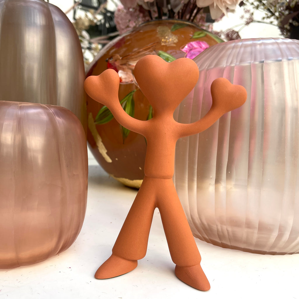 Breng liefde in huis met dit handgemaakte keramische beeldje van Luc De Maeght. Met zijn omhoog geheven armen straalt het een boodschap van liefde, eenheid en vriendschap uit. Een betekenisvol geschenk en stijlvol interieur accent.